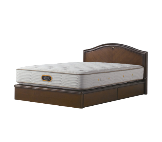 標準的實木床組加上可安裝在左邊或是右邊的抽?,讓?擁有更靈活的收納空間,同時擁有席夢思床組的優雅舒適。