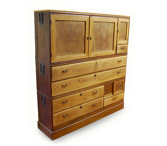 在傳統日本社會裡,桐箪笥(木櫃)是代代相傳的高級家俱也是嫁女兒時的嫁妝。本古董桐箪笥(木櫃)是採用高級桐木所製造出來的桐箪笥(木櫃),有著約100年的歷史卻還是一樣堅固耐用。木頭的顏色非常的古色古香,是現在也無法再複製出的特別感。適合擺飾在客廳,臥房為您的室內空間增添復古的時尚元素。